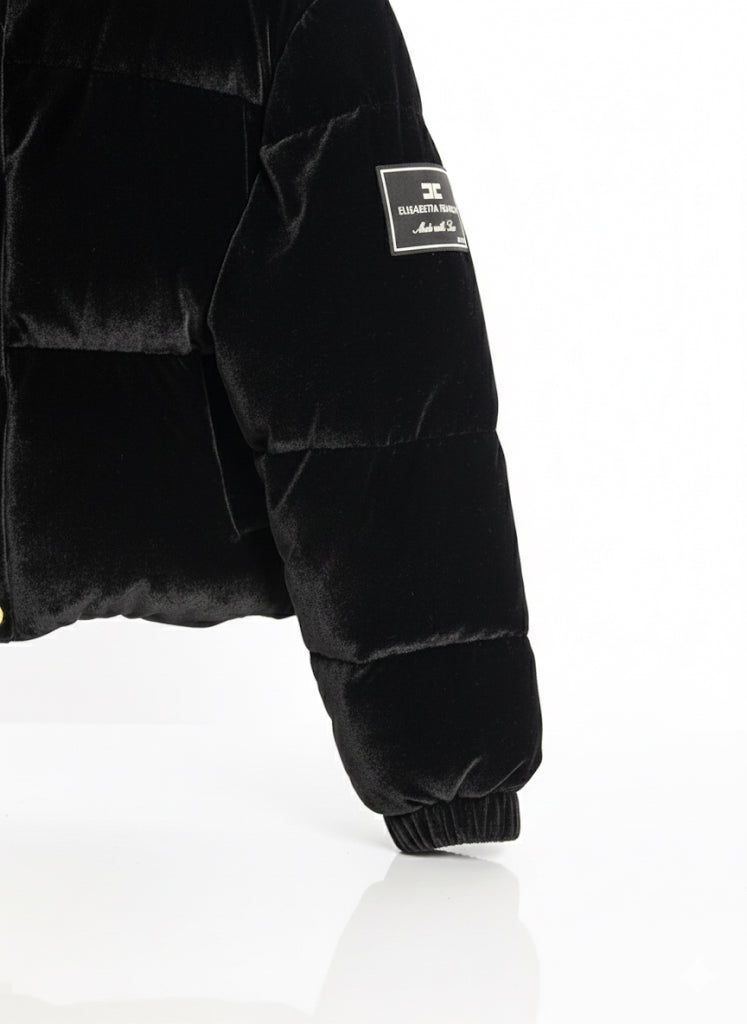 Elegancka pikowana kurtka damska od Elisabetta Franchi, łącząca klasyczny fason z nowoczesnym stylem. Stylowa i wyrafinowana kurtka puchowa uszyta z luksusowej tkaniny welwetowej — gwarantującej miękkość i elegancki wygląd. Model o długości „cropped” z krojem regular fit, który zapewnia komfort oraz nowoczesną, kobiecą sylwetkę.