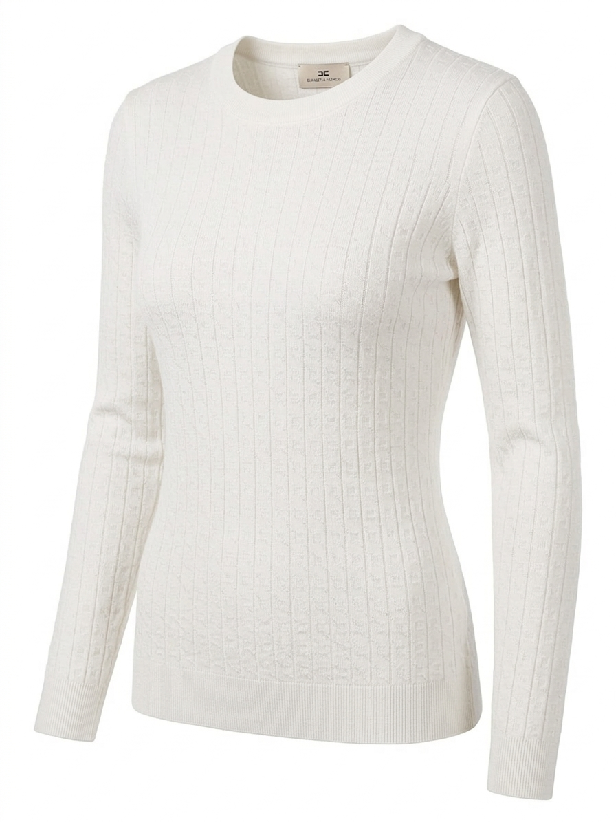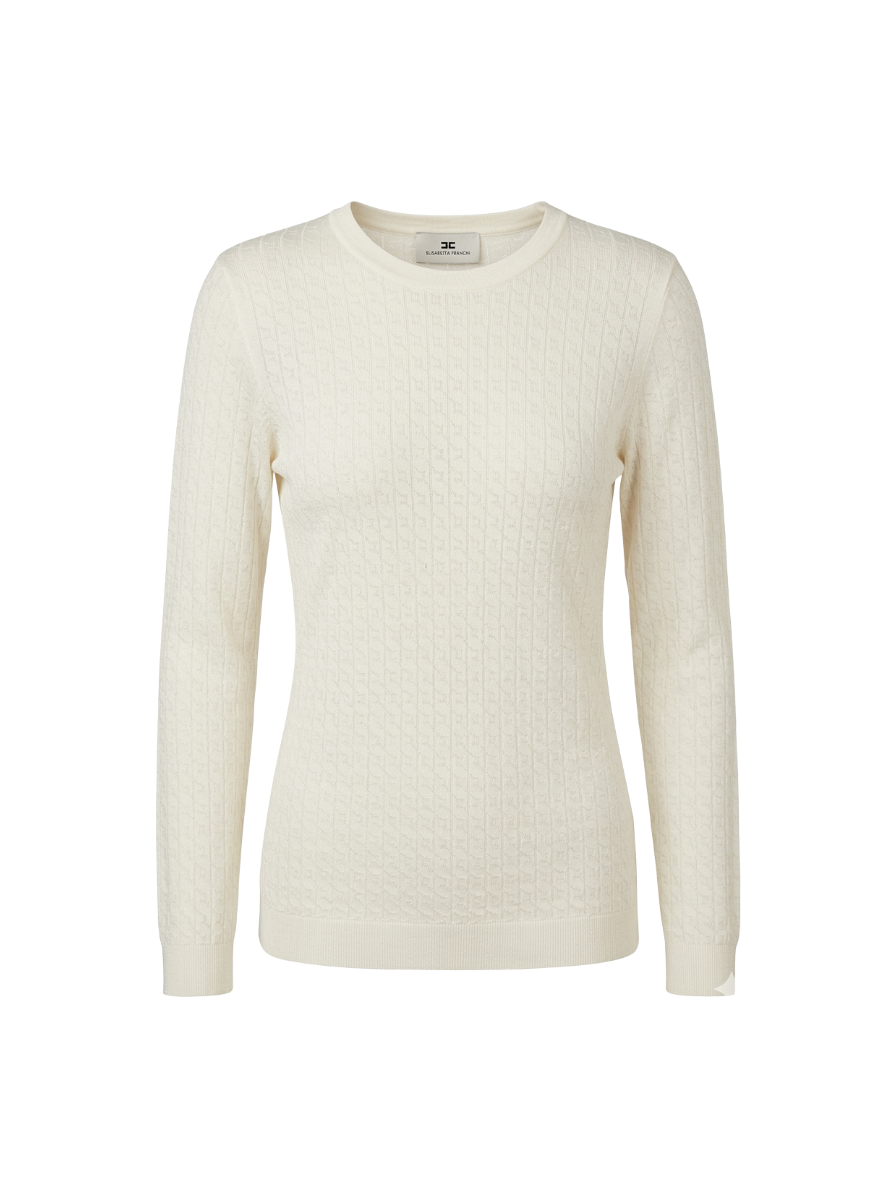 ELISABETTA FRANCHI wełniany sweterek żakardowy biały