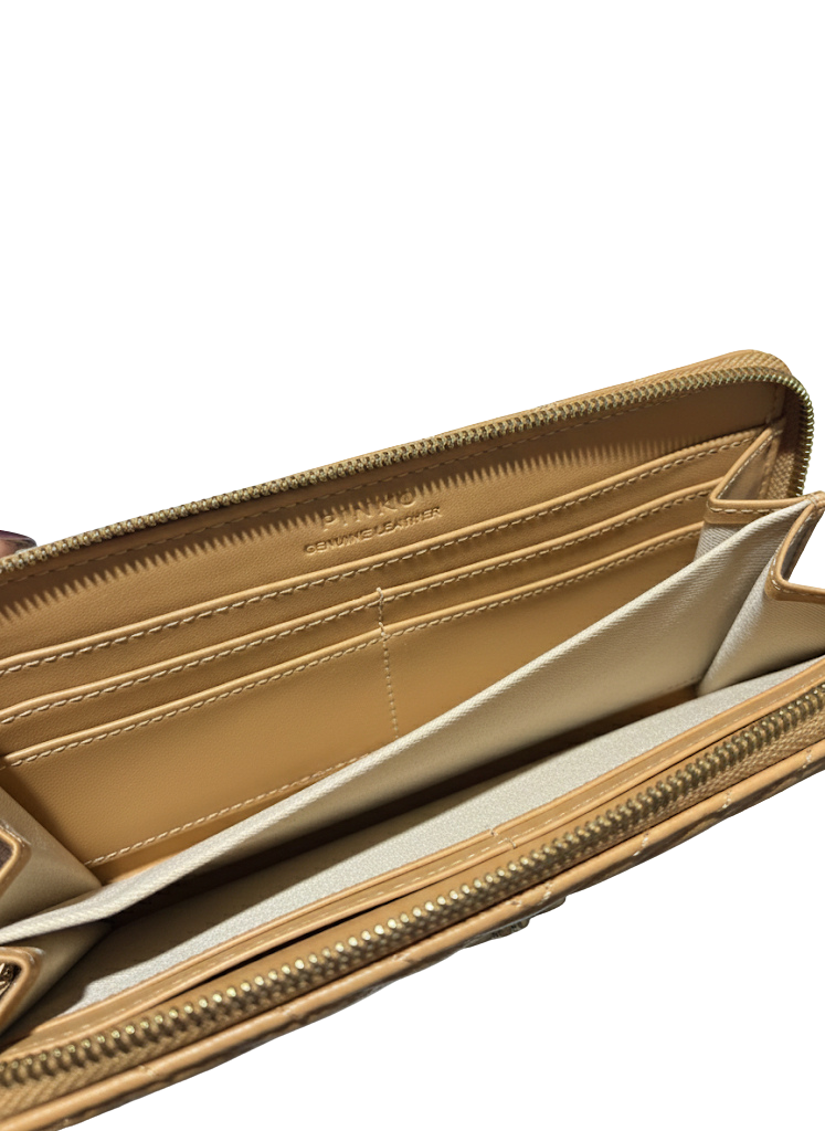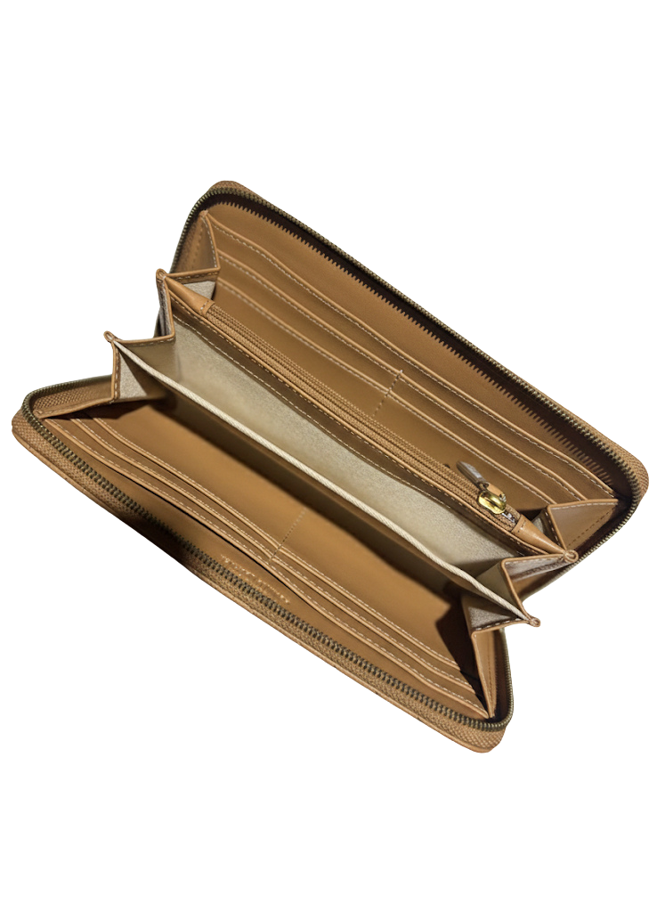 Zapięcie na suwak zapewnia bezpieczeństwo dla zawartości, a wewnętrzna struktura portfela została starannie zaprojektowana: kieszeń na bilon zapinana na zamek, przegroda na banknoty, aż 8 przegródek na karty, co pozwala na wygodne uporządkowanie kart płatniczych, dowodu, wizytówek itp.